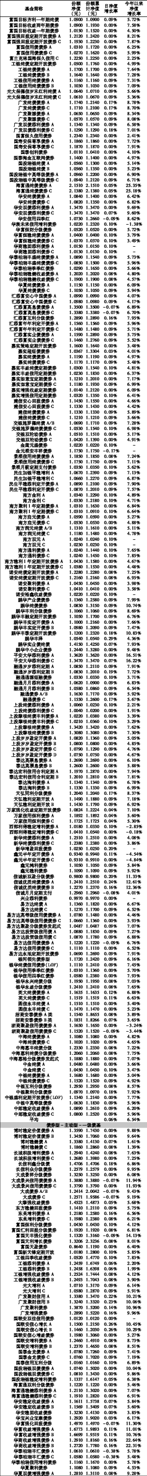 基金净值日报表