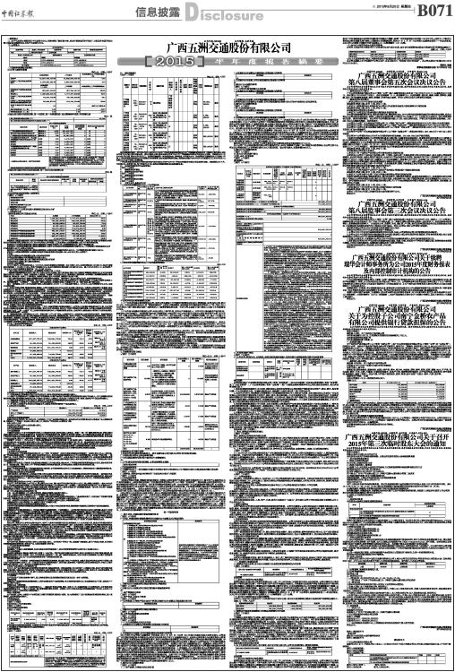广西五洲交通股份有限公司关于召开2015年第三次临时股东大会的通知