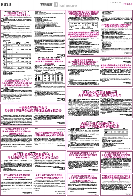 关于旗下部分基金持有的长期停牌股票估值方法调整的公告
