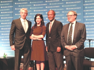 比尔·阿克曼(左一)在哥伦比亚大学的一场讨论会上