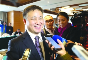 全国政协委员、传化集团董事长徐冠巨接受记者采访。