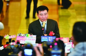 商务部部长高虎城接受记者采访。