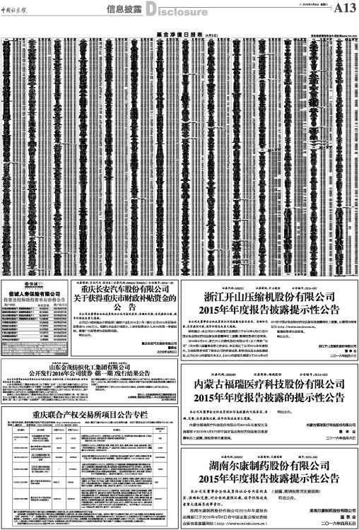 账户类别 账户设立日 本次公告(2016-60)仅反映投资账户截止2016年4月01日的投资单位价格,下一公告日为2016年4月07日。信诚人寿投资连结保险各账户价格为每日在《中国证券报》及公司网站公告,如遇节假日则顺延。详情请查询信诚人寿全国服务电话:4008-838-838 或登陆公司网站:www.citic-prudential.com.cn。信诚人寿竭诚为您服务。 19.02319 20.02363 30.64976 13.68096 10.63438 13.32500 10.87883 13.22078 9.17890 5.89469 投资连结保险投资单位价格公告 单位价格 优选全债投资账户(原债券投资账户) 稳健配置投资账户(原增值投资账户) 成长先锋投资账户(原基金投资账户) 现金增利投资账户(原稳健增长投资账户) 平衡增长投资账户 策略成长投资账户 积极成长投资账户 打新立稳投资账户 优势领航投资账户 季季长红利投资账户 2001年5月15日 2001年5月15日 2001年9月18日 2005年3月25日 2007年5月18日 2007年5月18日 2007年5月18日 2010年6月25日 2015年3月16日 2010年6月25日