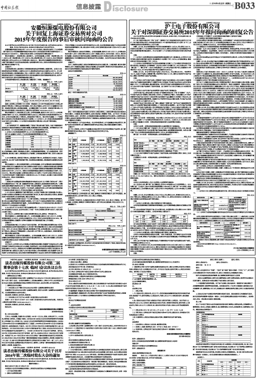 安徽恒源煤电股份有限公司于 2016 年 4月14日收到上海证券交易所上市公司监管一部下发的《关于对安徽恒源煤电股份有限公司2015年年度报告的事后审核问询函》(上证公函【2016】0369号)。根据《问询函》要求,公司现就相关问题回复如下:
