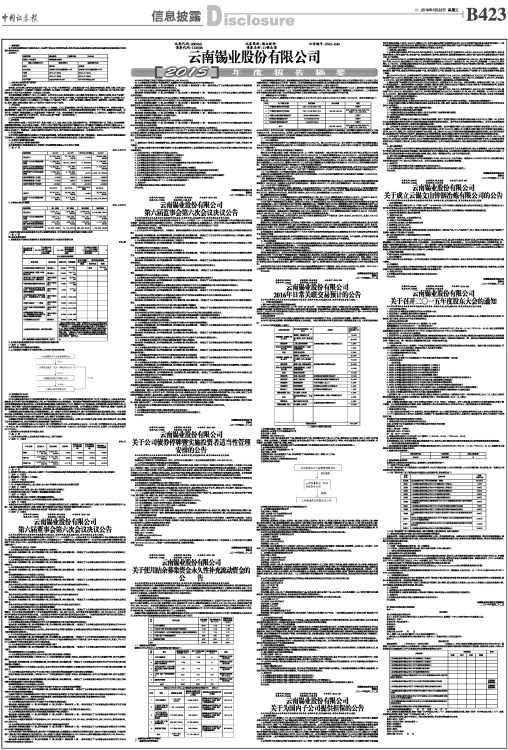 1、《云南锡业股份有限公司2015年度董事会工作报告》