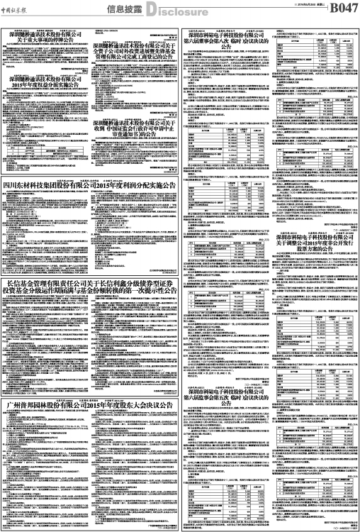 1、本公司此次委托中国结算深圳分公司代派的现金红利将于2016年5月31日通过股东托管证券公司(或其他托管机构)直接划入其资金账户。