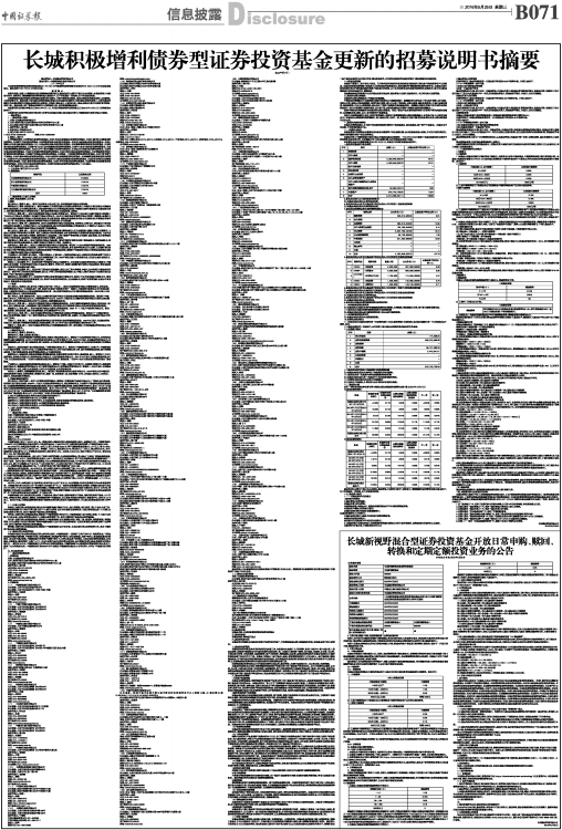 本基金管理人根据《中华人民共和国证券投资基金法》、《公开募集证券投资基金运作管理办法》、《证券投资基金销售管理办法》、《证券投资基金信息披露管理办法》等法律法规及《长城积极增利债券型证券投资基金基金合同》的要求,并结合本基金管理人对基金实施的投资管理活动,对2015年11月24日刊登的本基金招募说明书进行了更新,更新的主要内容如下:
