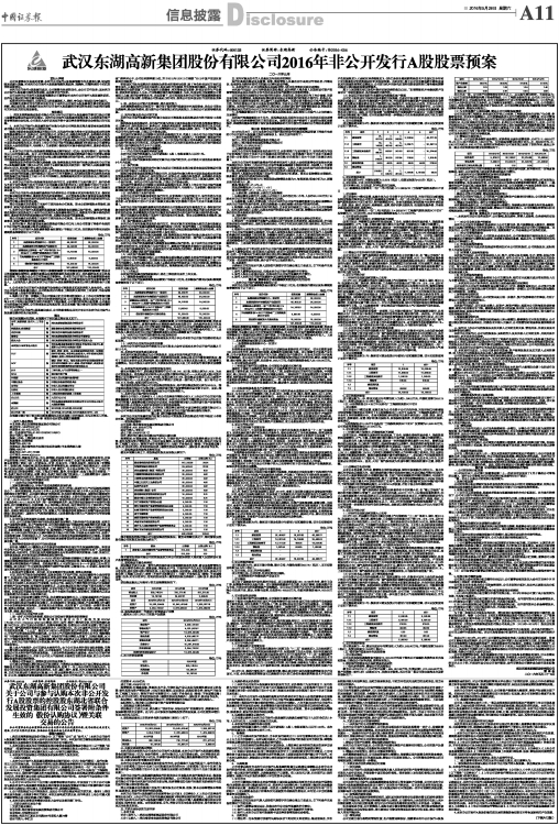 武汉东湖高新集团股份有限公司2016年非公开发行A股股票预案