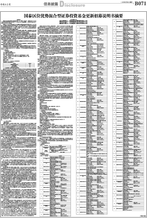 国泰区位优势混合型证券投资基金更新招募说明书摘要