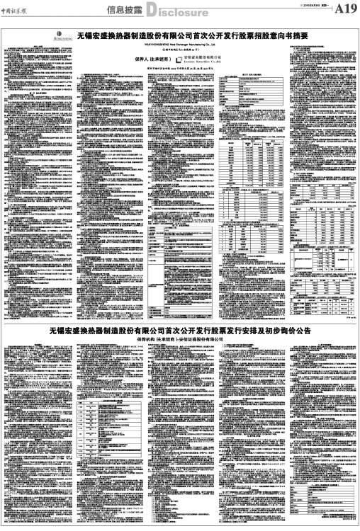 无锡宏盛换热器制造股份有限公司首次公开发行股票招股意向书摘要