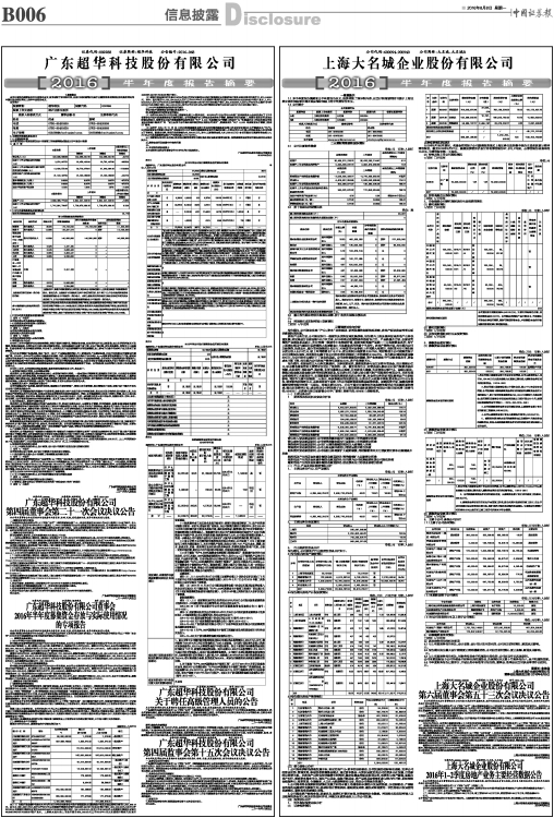 公司代码:600094、900940 公司简称:大名城、大名城B