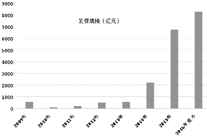 从今年一级市场的表现来看,Wind数据显示,今年1-7月,房地产业发债886只,发债总额8016.89亿元,超过2015全年发行规模6751.73亿元,是去年同期发债总额1934.73亿元的4倍多。8月以来,房地产行业又发行了47只债券,总发行量为310.76亿元,净融资额为264.38亿元。