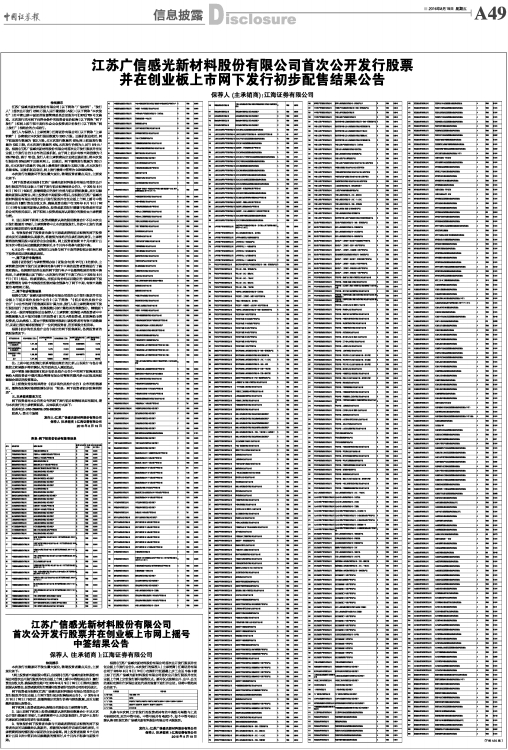 江苏广信感光新材料股份有限公司首次公开发行股票