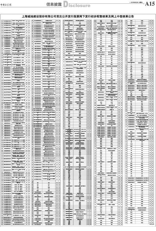 上海城地建设股份有限公司首次公开发行股票网下发行初步配售结果及网上中签结果公告