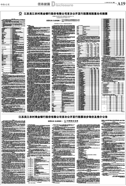 江苏吴江农村商业银行股份有限公司首次公开发行股票初步询价及推介公告