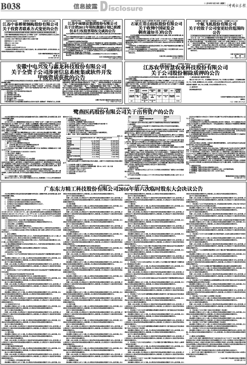 广东东方精工科技股份有限公司2016年第六次临时股东大会决议公告