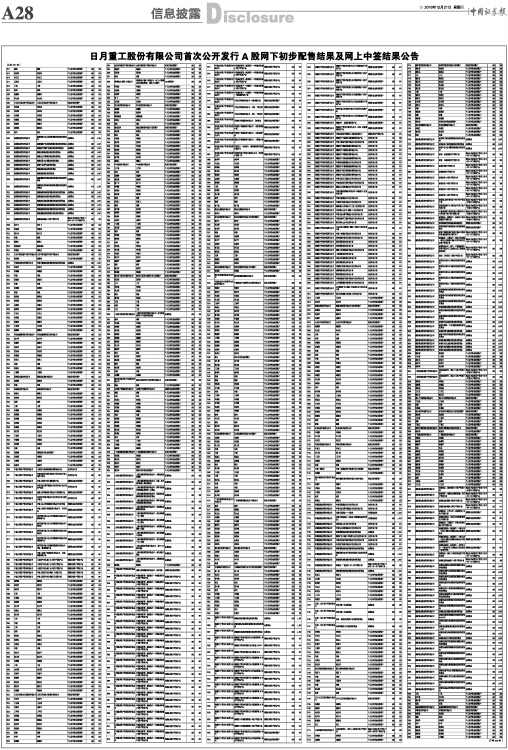 日月重工股份有限公司首次公开发行A股网下初步配售结果及网上中签结果公告