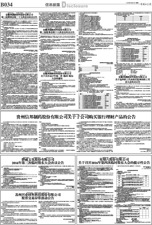 安徽中电兴发与鑫龙科技股份有限公司2016第四次临时股东大会决议的公告