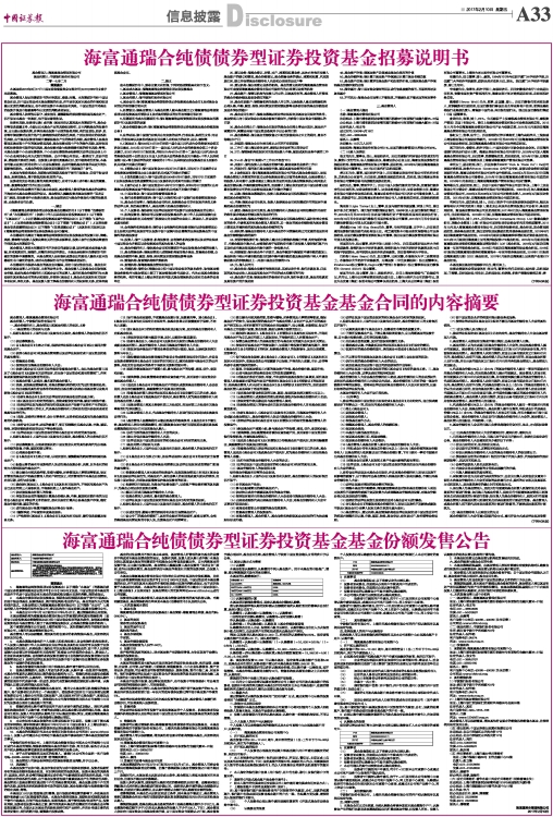海富通瑞合纯债债券型证券投资基金基金合同的内容摘要