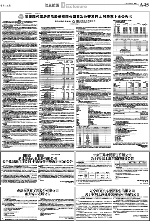 茶花现代家居用品股份有限公司首次公开发行A股股票上市公告书