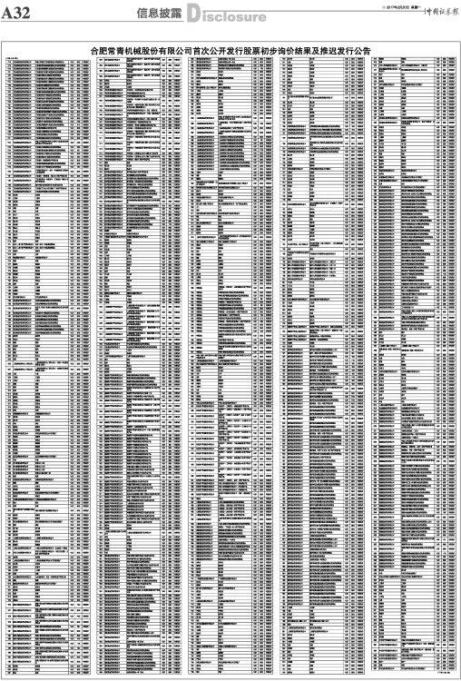 合肥常青机械股份有限公司首次公开发行股票初步询价结果及推迟发行公告