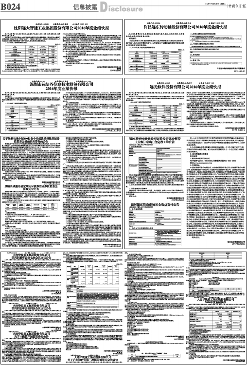 沈阳远大智能工业集团股份有限公司2016年度业绩快报