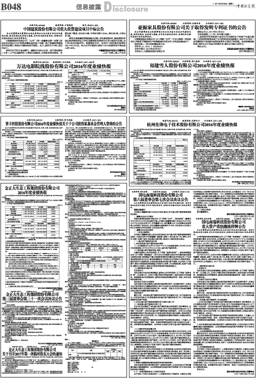 2016年度业绩快报