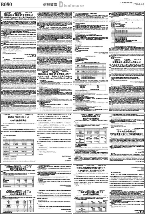 广宇集团股份有限公司2016年度业绩快报