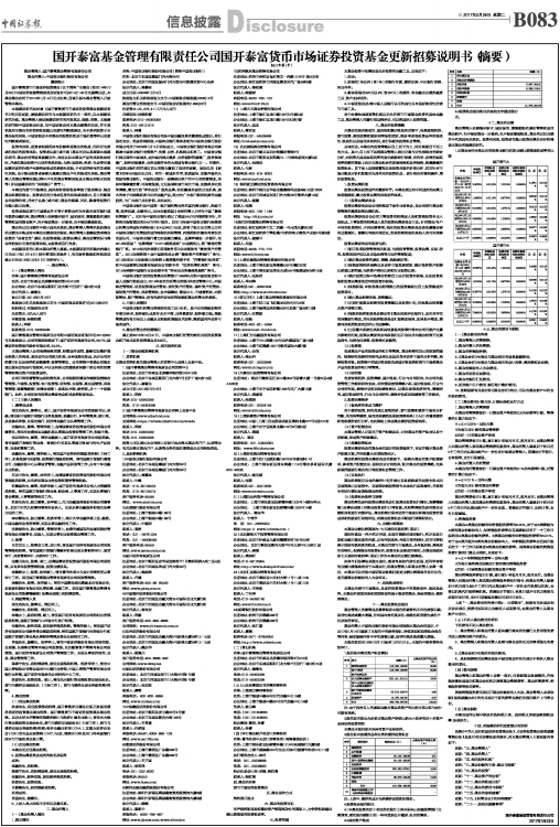 本招募说明书是对原《国开泰富货币市场证券投资基金招募说明书》的定期更新,原招募说明书与本招募说明书不一致的,以本招募说明书为准。基金管理人保证招募说明书的内容真实、准确、完整。本招募说明书经中国证监会注册,但中国证监会对本基金募集的注册,并不表明其对本基金的价值和收益做出实质性判断或保证,也不表明投资于本基金没有风险。中国证监会不对基金的投资价值及市场前景等作出实质性判断或者保证。