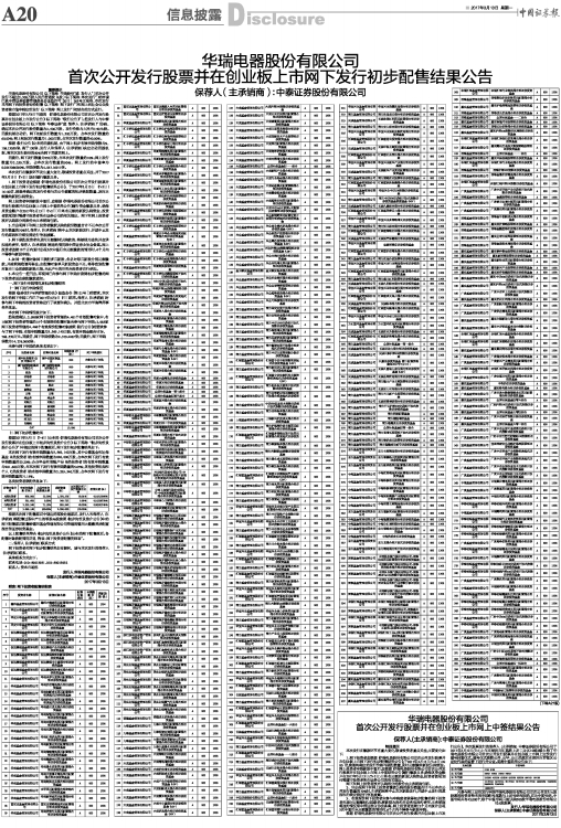 首次公开发行股票并在创业板上市网下发行初步配售结果公告