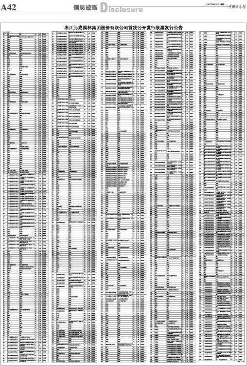 浙江元成园林集团股份有限公司首次公开发行股票发行公告