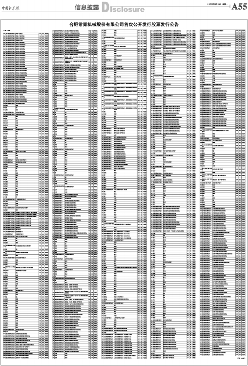 合肥常青机械股份有限公司首次公开发行股票发行公告