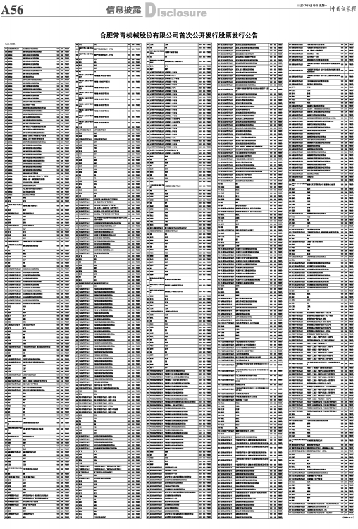 合肥常青机械股份有限公司首次公开发行股票发行公告