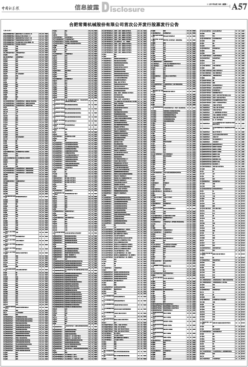 合肥常青机械股份有限公司首次公开发行股票发行公告