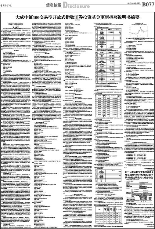 大成中证100交易型开放式指数证券投资基金更新招募说明书摘要