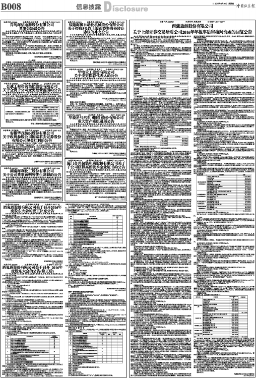 关于上海证券交易所对公司2016年年报事后审核问询函的回复公告