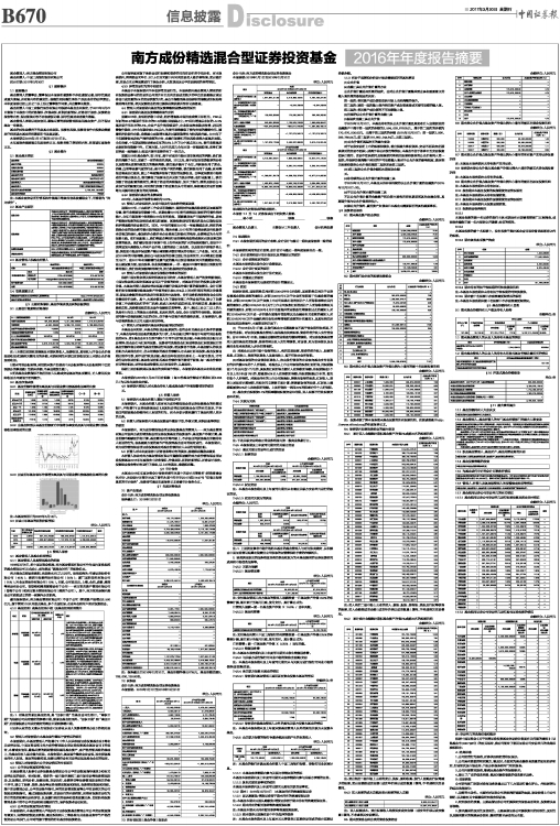 本托管人依法对南方基金管理有限公司编制和披露的南方成份精选混合型证券投资基金2016年年度报告中财务指标、净值表现、利润分配情况、财务会计报告、投资组合报告等内容进行了核查,以上内容真实、准确和完整。