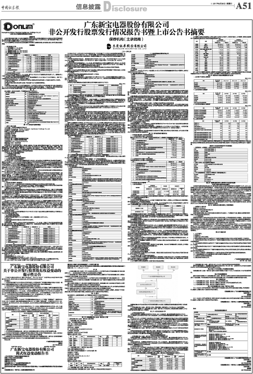 2017年1月18日,广东新宝电器股份有限公司收到中国证监会《关于核准广东新宝电器股份有限公司非公开发行股票的批复》(证监许可[2017]54号),核准公司本次非公开发行股份。公司向9名发行对象非公开发行股票数量合计51,119,800股,本次发行新增股份登记手续已于2017年3月23日办理完毕,并由中国证券登记结算有限公司深圳分公司出具了证券登记证明,公司本次新增股份上市首日为2017年3月31日。公司总股本由本次非公开发行股票前574,601,560股增至625,721,360股。
