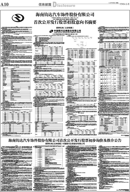 海南钧达汽车饰件股份有限公司首次公开发行股票初步询价及推介公告