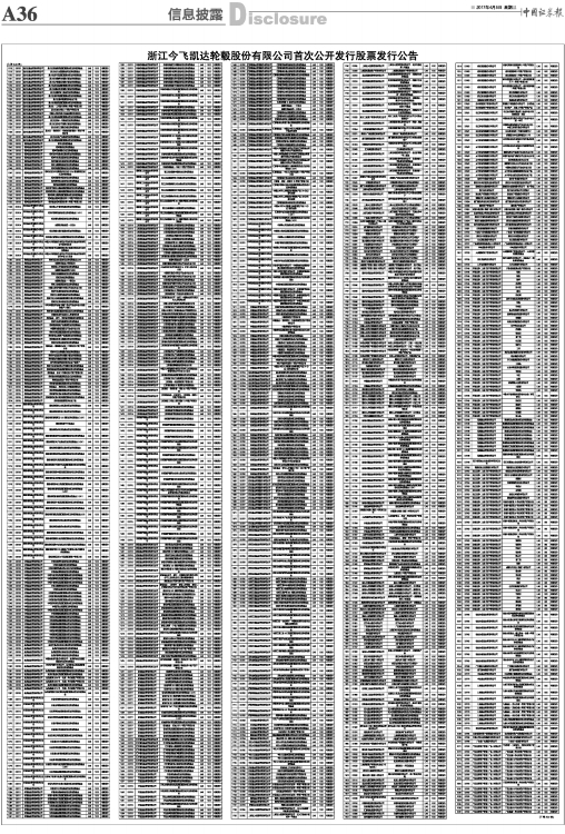 浙江今飞凯达轮毂股份有限公司首次公开发行股票发行公告