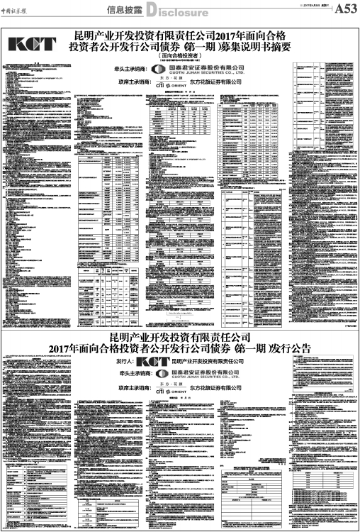 昆明产业开发投资有限责任公司2017年面向合格