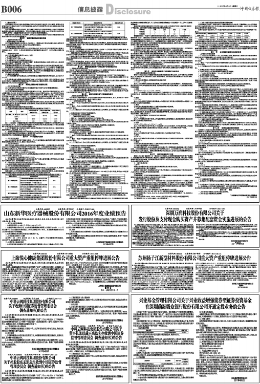 山东新华医疗器械股份有限公司2016年度业绩预告