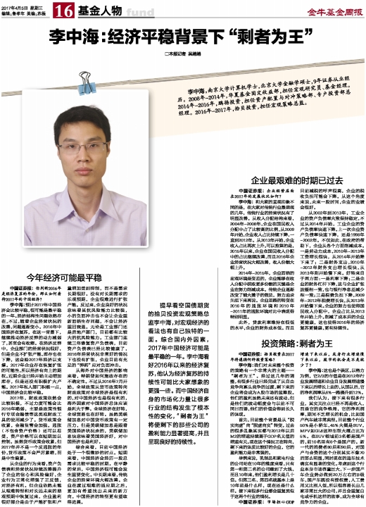 李中海:经济平稳背景下“剩者为王”