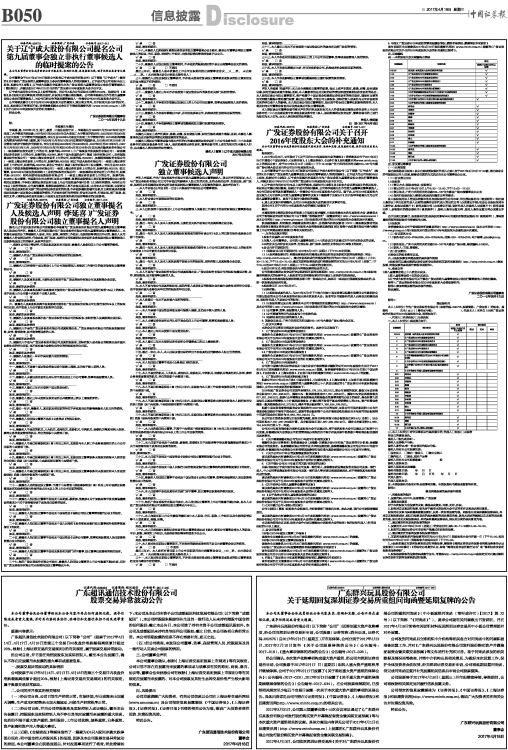 3.辽宁成大股份有限公司关于提名广发证券第九届董事会独立非执行董事候选人的临时提案。