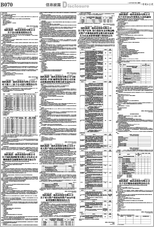 国药集团一致药业股份有限公司董事会