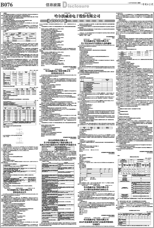 根据中国证监会《上市公司监管指引第2号-上市公司募集资金管理和使用的监管要求》、《上海证券交易所上市公司募集资金管理办法(2013年修订)》和《哈尔滨威帝电子股份有限公司募集资金管理办法》的相关规定,现将哈尔滨威帝电子股份有限公司(以下简称“本公司”)2016年度募集资金存放和使用情况报告如下:
