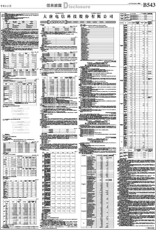 (十七)审议通过《关于召开2016年年度股东大会的议案》,公司定于2017年5月12日下午召开2016年年度股东大会。详见《大唐电信科技股份有限公司关于召开2016年年度股东大会的通知》。