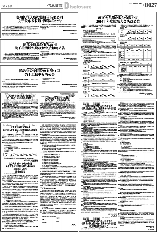 关于2016年年度股东大会决议公告的更正公 告