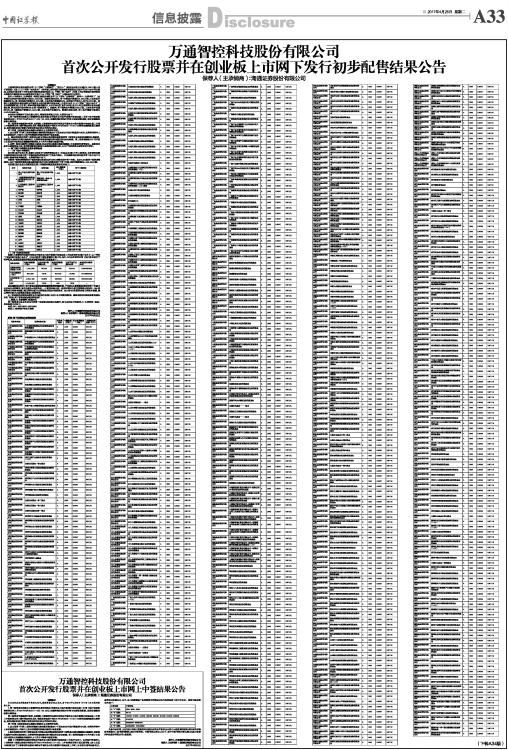 首次公开发行股票并在创业板上市网下发行初步配售结果公告