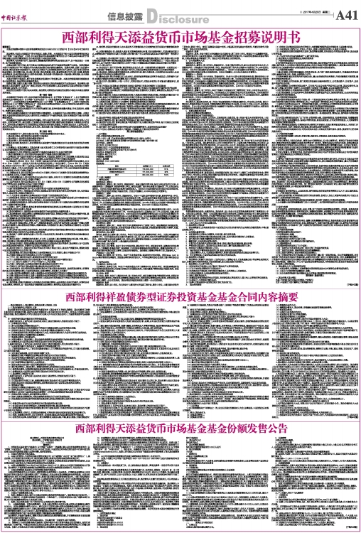 西部利得天添益货币市场基金招募说明书